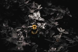 A photo of a carpenter bee getting to work.